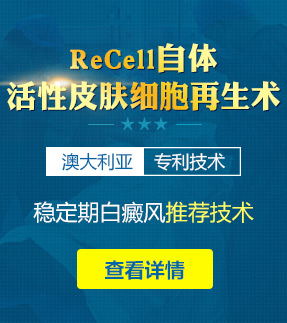 详细介绍:ReCell自体活性皮肤细胞再生术,首先从患者正常皮肤取一片薄的皮片,用Recell一次性独立自体细胞搜集器制成的活细胞悬液培养,促成黑素细胞体外再生,“上喷”在创面,达到黑素细胞的恢复,使皮肤的正常色素沉着,大大增加白癜风康复的几率。